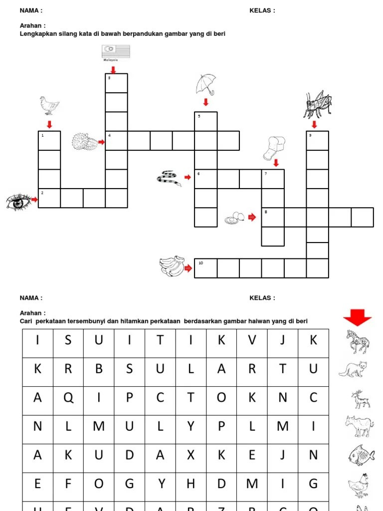 Cari Perkataan Tersembunyi Cari Kata Bahasa Melayu : Cari Kata 1 Worksheet